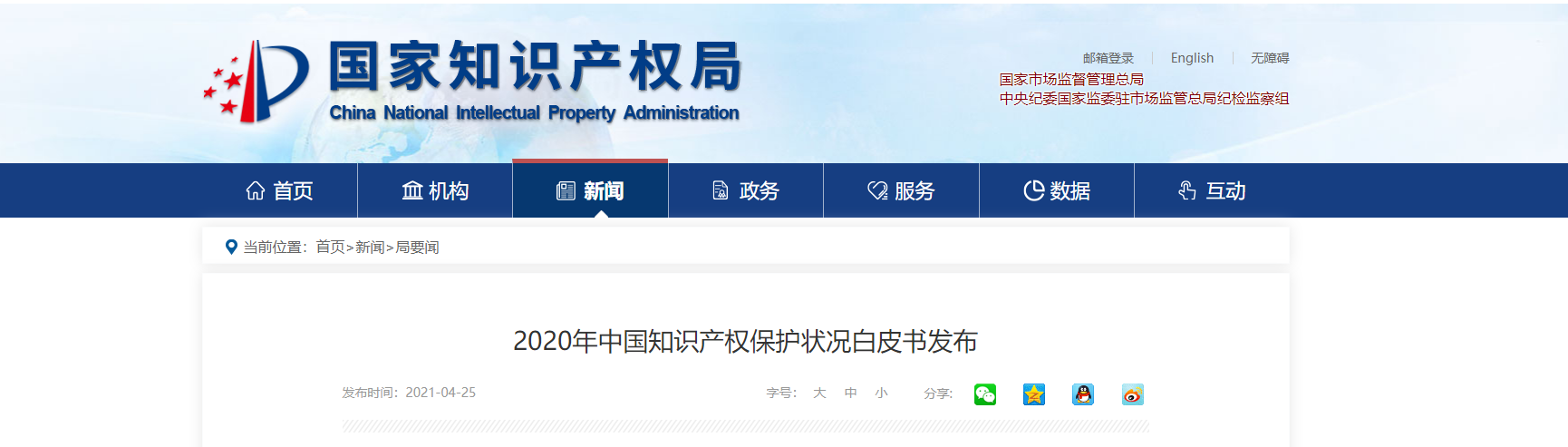 4月25日,中国国家知识产权局发布了《二〇二〇年中国知识产权保护状况》白皮书。从保护成效、制度建设、审批登记、文化建设和国际合作等多个方面,总结了2020年中国知识产权保护实践做法和进展情况,介绍了一年来知识产权保护工作成效,全文约2万字。