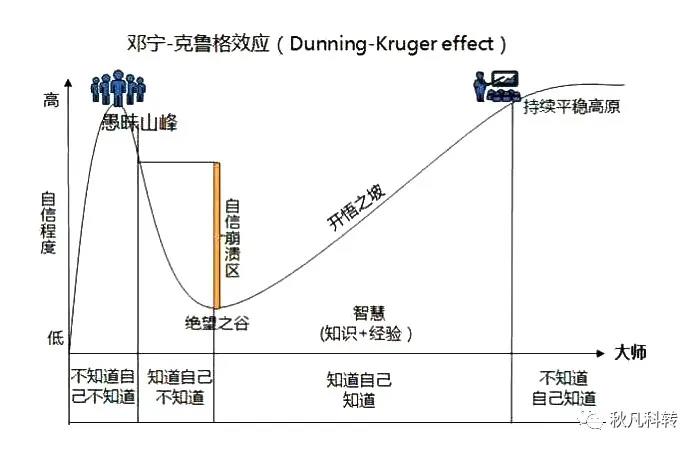刚从事科技成果转化时,通常是“不知道自己不知道”,也就无知者无畏,从事科技成果一段时间了,积累一定的经验后,就会“知道自己不知道”!在这个阶段,我们不仅不要过于担心,还要“恭喜”自己已经过了“愚昧山峰”,接下来要做的就是,不放弃,坚持学习和坚持实践,科技成果转化的“开悟之坡”也许就不远了!
