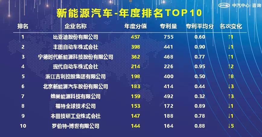 5、新能源汽车领域企业年度排名TOP10中,国内企业占据5席,其中比亚迪股份有限公司高居榜首,国内两大电池供应商宁德时代、蜂巢能源均上榜。