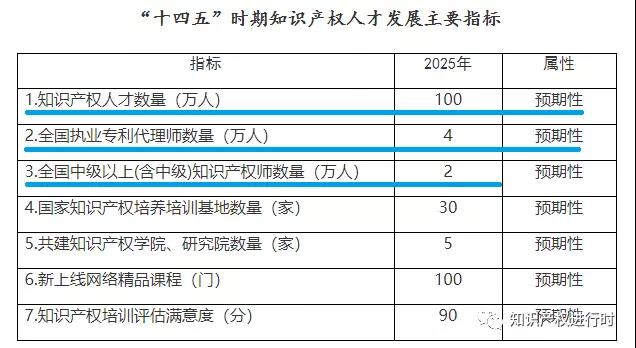 近日,国家知识产权局印发《知识产权人才“十四五”规划》,主要指标见下图: