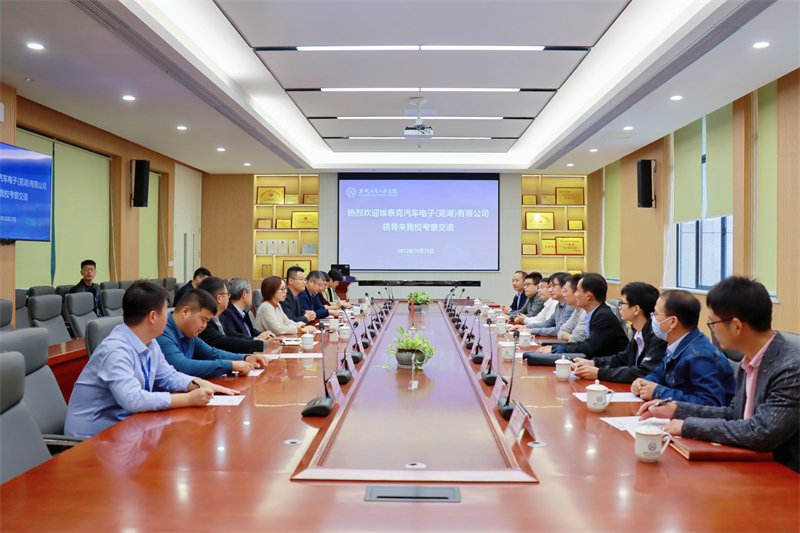 本网讯 为进一步深化落实校企合作、推深产教融合,10月25日下午,埃泰克汽车电子(芜湖)有限公司副总经理陈湧及有关生产、研发部门负责人一行来我校考察回访。副校长章敏凤,科技处处长高涛,计算机与软件工程学院(大数据与人工智能学院)执行院长周鸣争,电气与电子工程学院执行院长马利祥等接待了考察团一行。