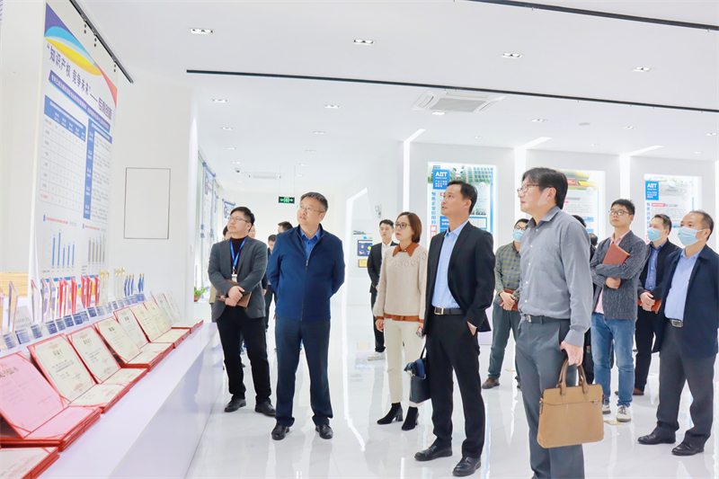 考察团首先来到双创中心、Robomaster演练现场和先进智能制造柔性生产线参观考察,详细了解了学校近年来在科研、教育教学改革、学科竞赛、专利发明等方面的亮点与特色。